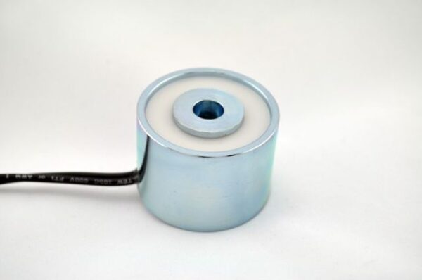 EM150-28-222 – Round Electromagnet 1.5 inch Dia. 28 volts DC – Holding 88 lbs.