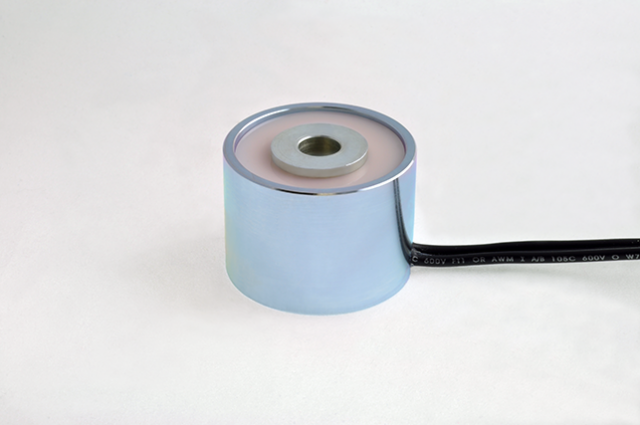 EM175-24-112 – Round Electromagnet 1.75 inch Dia. 24 volts DC – Holding 75 lbs.
