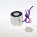 EML35mm-12 – Round Permanent Electromagnet 35 mm Dia. 12 volts DC – Holding 44.9 lbs.