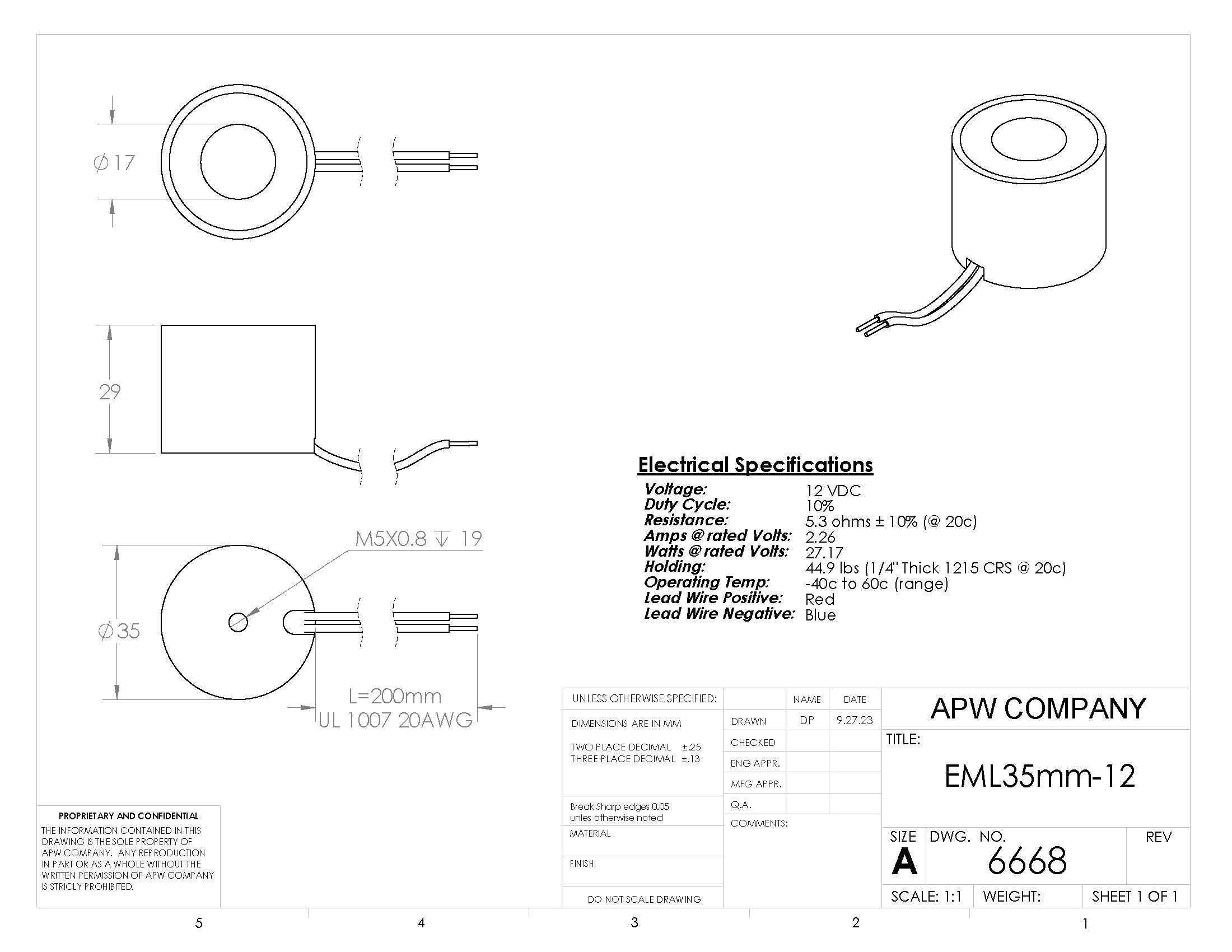 The EML35mm-12 Round Permanent Electromagnet is a high-quality and precision-made product designed to operate on 12 volts DC. With a diameter of 35 mm and a holding capacity of 44.9 lbs, this electromagnet is ideal for use in a range of applications, such as material handling, magnetic separation, and clamping. The product is manufactured with the highest level of precision and quality to ensure reliable performance and durability. It is an excellent choice for mechanical and electrical engineers seeking a robust and efficient solution for their electromagnetic needs, and will perform exceptionally well in various settings.