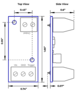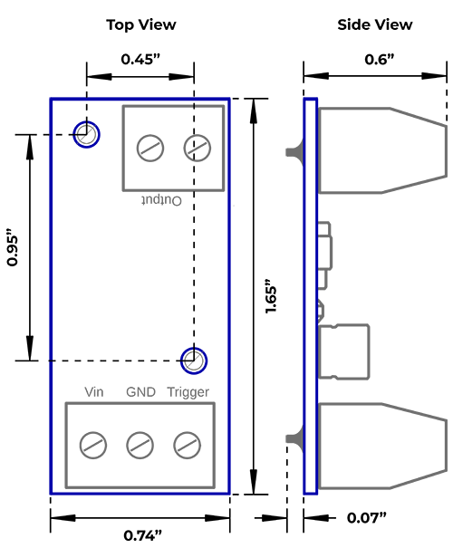 The KG-ID-V4 Inline Driver simplifies operating coil devices, like solenoids and electromagnets, with its hit-and-hold configuration. This driver activates at full power and then drops down to a lower holding power, significantly reducing operating temperature and energy consumption. Different hit-and-hold profiles, including a solid-state relay profile, are available for various coil devices. The driver is easily activated with a logic signal, triggering the driver by connecting the trigger input to ground or sending a logic “0” input to the pulled-up +5v trigger input.