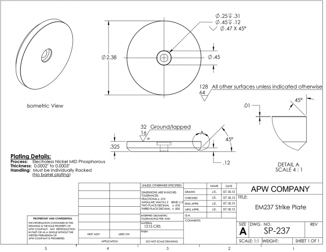 SP-237 Strike Plate or Keeper Plate 2.375″ Dia. x 0.32″ H for EM237 or Smaller Electromagnets